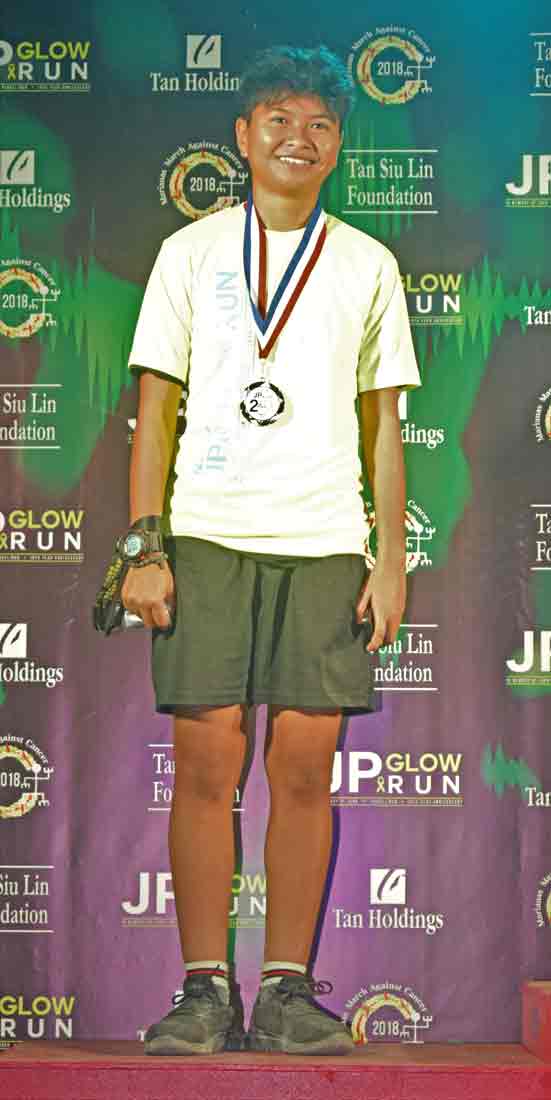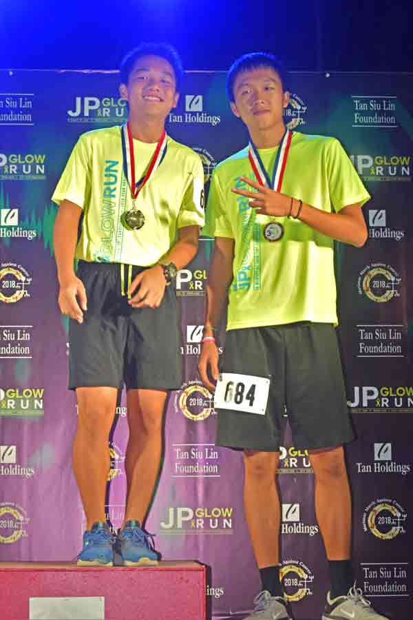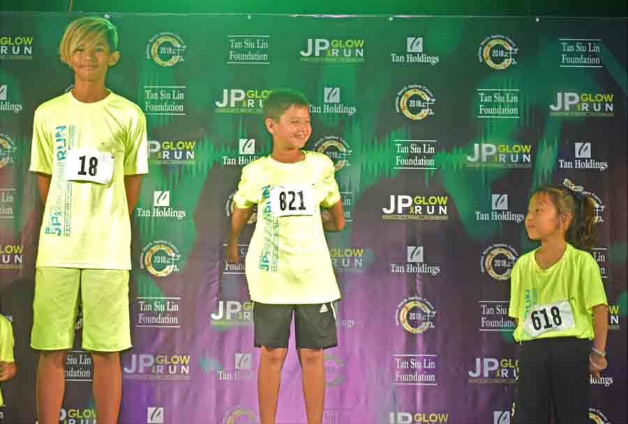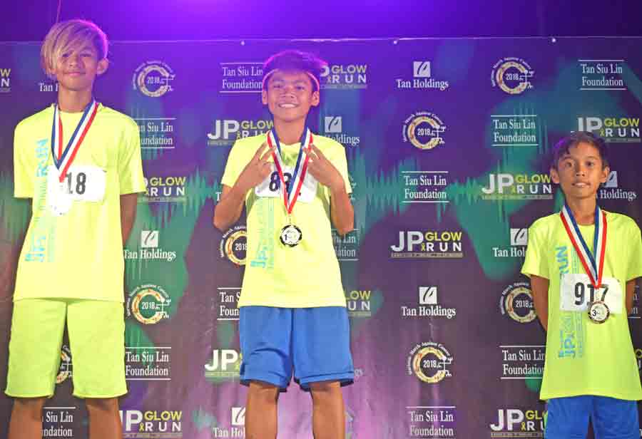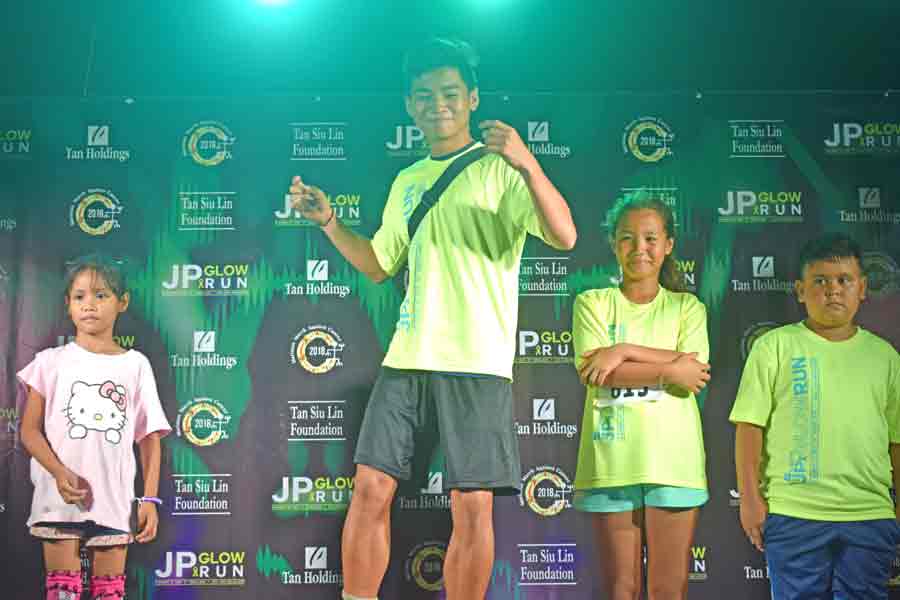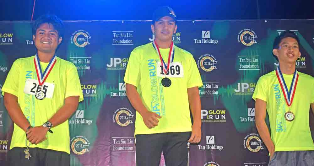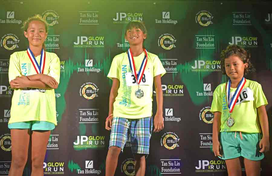 A Grace Christian Academy student, center, is all smiles as the Eagles won the contest for private schools with the most participants (140) in last Friday’s JP 5K Glow Run at the Garapan Fishing Base. Mt. Carmel School (98) and Agape Christian School (90) finished second and third, respectively.