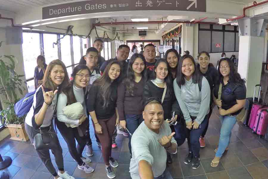 The 11 Marianas High School students who participated in a cultural exchange and ski program with Seisa Gakuen High School in Japan and their chaperones have their picture taken at the Francisco C. Ada-Saipan International Airport before their departure. (Contributed Photo)