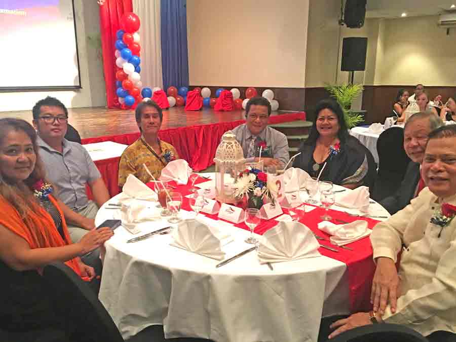Philippine honorary consul to the Commonwealth Glicerio Arago (far right) poses with guests during the vin d’ honneur dinner last Saturday at the Hibiscus Hall of the Fiesta Resort & Spa Saipan.