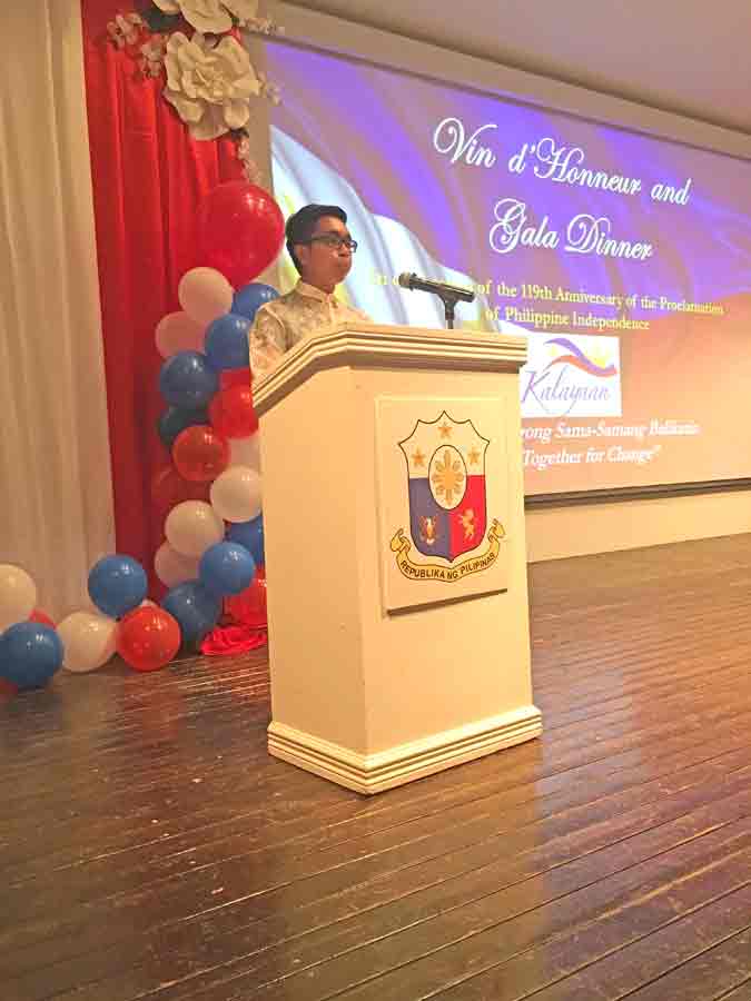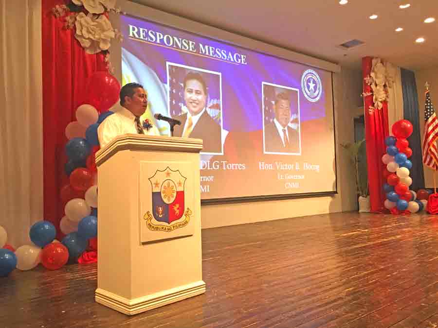 Philippine honorary consul to the Commonwealth Glicerio Arago offers a toast during the Vin d’ Honneur ceremony last Saturday night at the Hibiscus Hall of the Fiesta Resort Saipan.