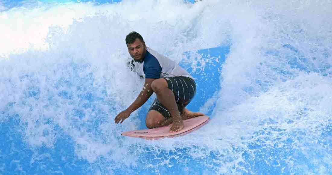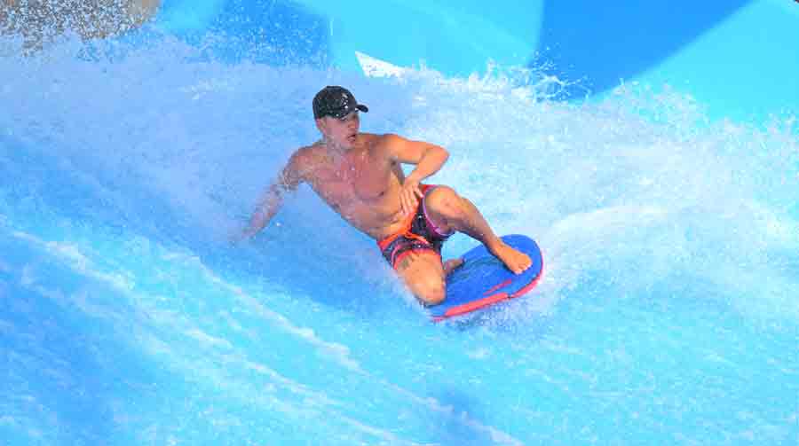 A participant competes in last Saturday’s 11th Annual International Point Break Open held at the Pacific Island Club-Saipan’s flowrider facility in San Antonio.