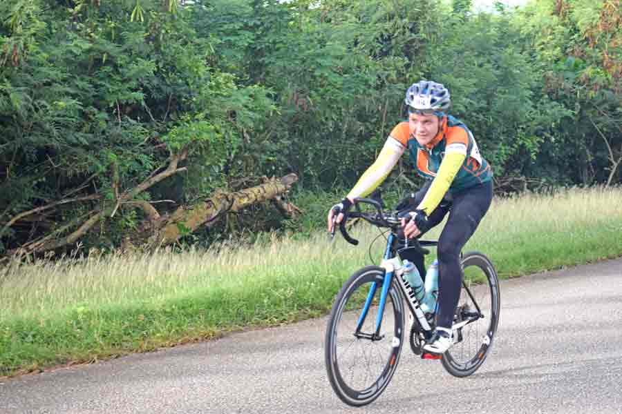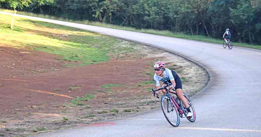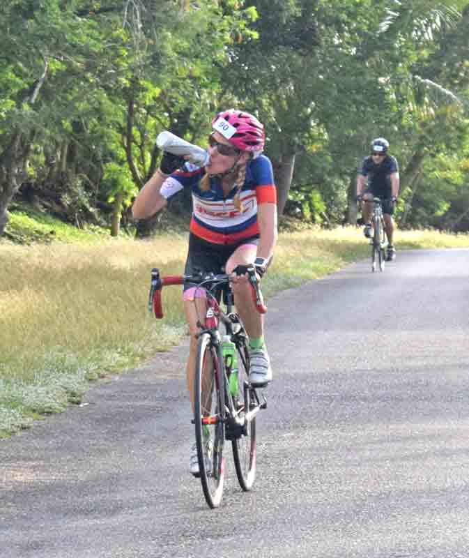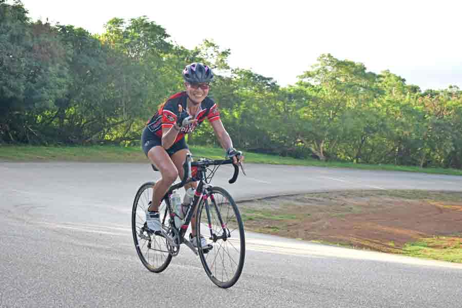 Two-time Olympian Jamie Wong of Hong Kong goes downhill heading toward the Bird Island Lookout during last Saturday’s 11th Hell of the Marianas Century Cycling Race. Wong failed to finish the race after encountering mechanical problems with her bike.