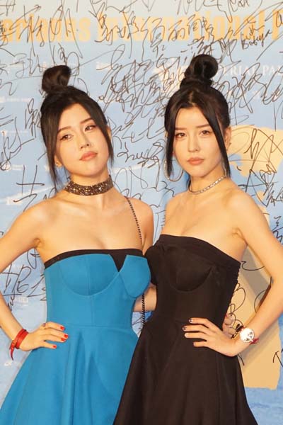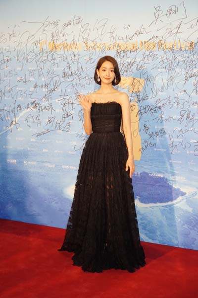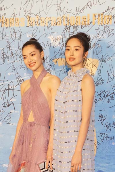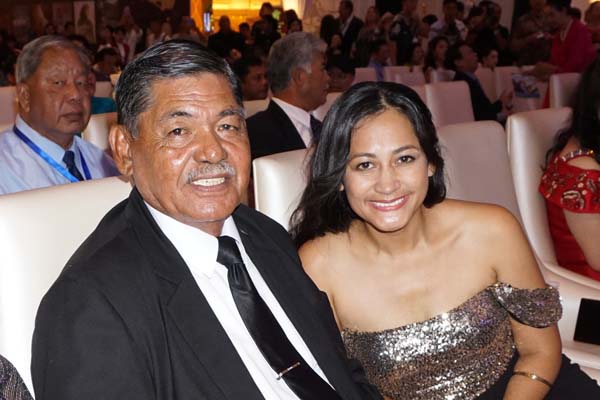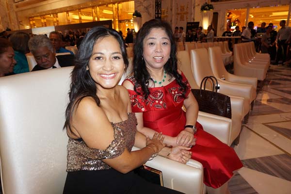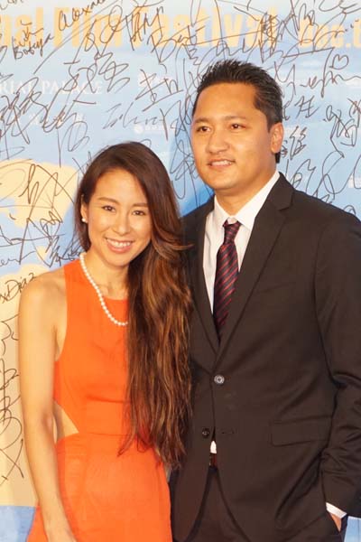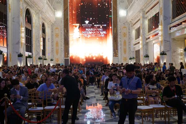 Marianas International Film Festival best actor winner Yue Ma is flanked by fans during the film festival movie screening.