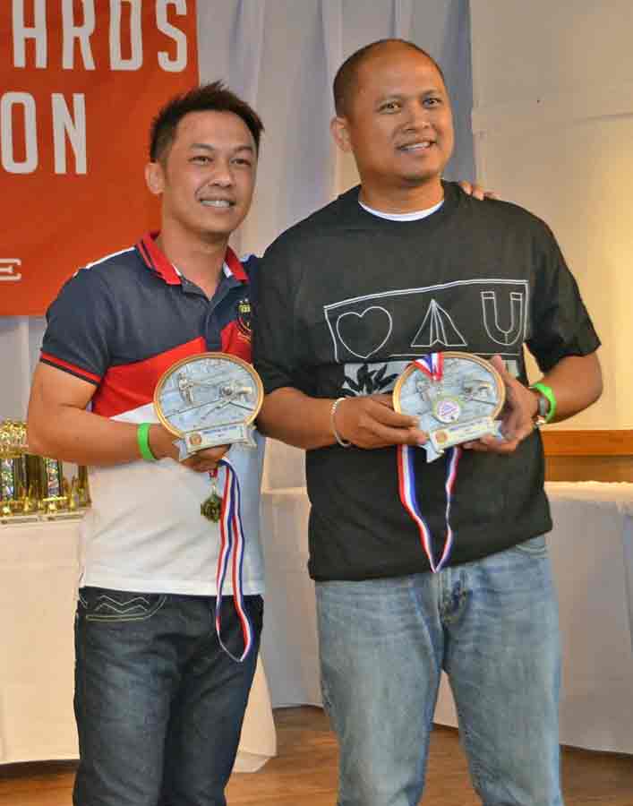 Saipan Billiards Association 2016-2017 Season finals most valuable player award recipients Zap Florentino, left, and Rolly Villanueva.