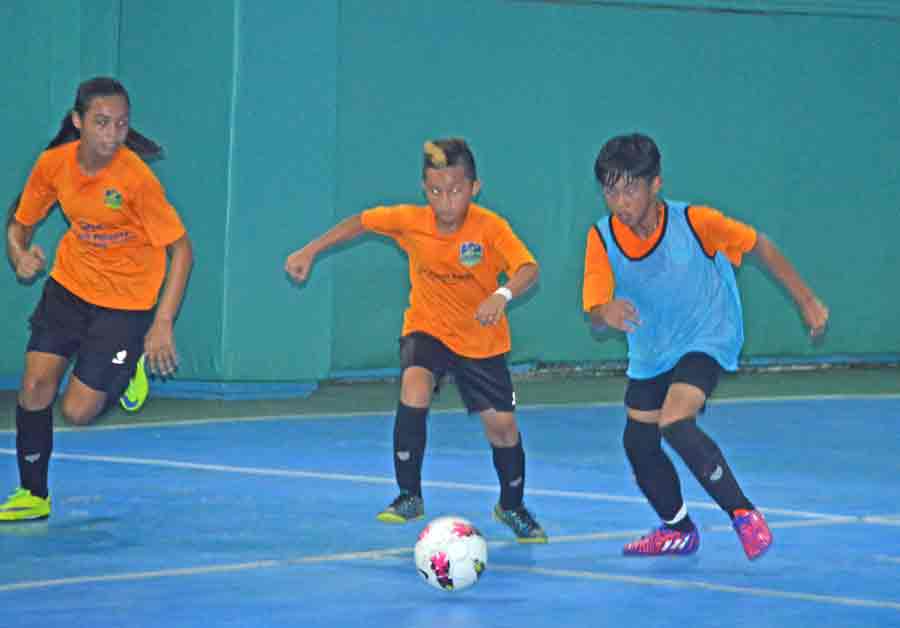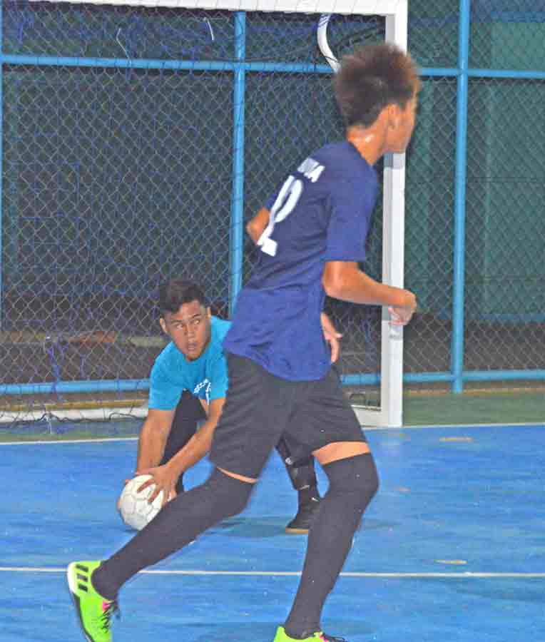 Betde’s Jamin Elliot dives for the save during their game against Newcastle FC in the co-d U16 division of the 2016 Saipan Soccer School Christmas Youth Futsal Tournament held late last month at the TSL Sports Complex.