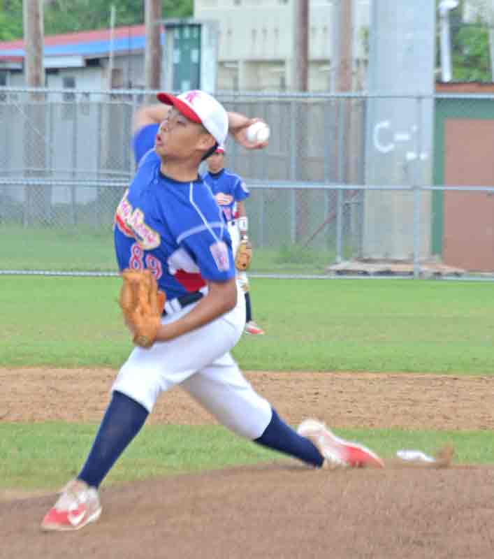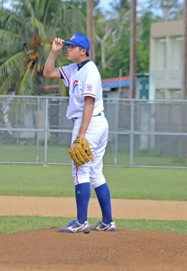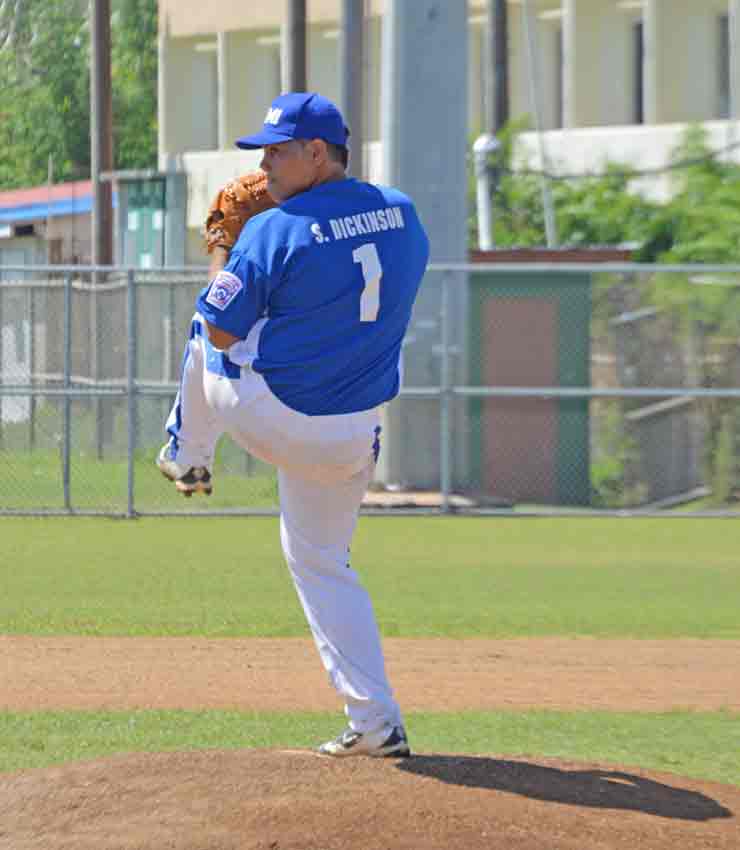 The CNMI Senior All-Stars’ Spencer Dickinson gets ready to pitch against Guam during their elimination round game in the 2017 Asia Pacific-Middle East Regional Tournament held late last month at the Francisco “Tan Ko” Palacios Ballfield.