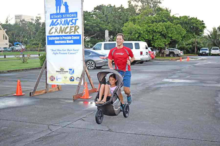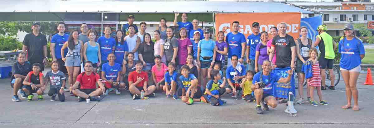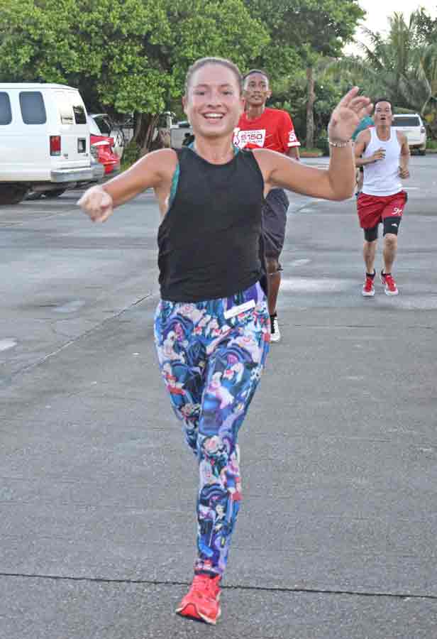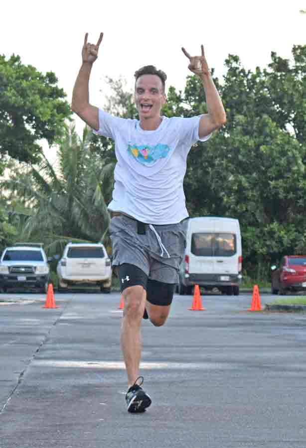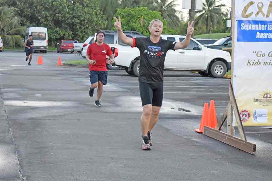 Kosuke Sato raises his arms as he crosses the finish line in the 2017 Bike and Run for Cure Prostrate and Childhood Cancer Awareness Month held last Saturday at the American Memorial Park.