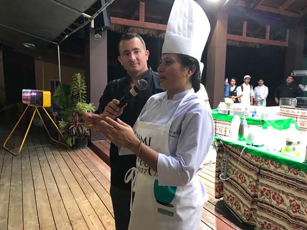 Everest Kitchen’s Laxmi Shrestha explains her final dish to the judges during the 2017 Next Top Chef competition last Thursday at the Fiesta Resort & Spa Saipan. (Kimberly A. Bautista)