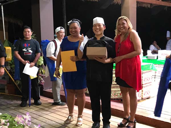 Kensington Resort Saipan’s Joon Su Park, center, poses for a photo after being awarded second place at the 2017 Next Top Chef competition last Thursday at the Fiesta Resort & Spa Saipan. (Kimberly A. Bautista)