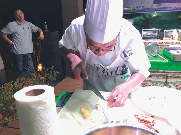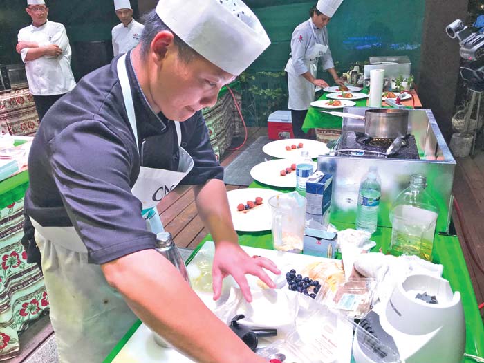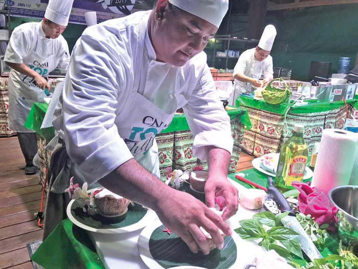 Ronald Gabionza of the Northern Marianas Technical Institute places the final touches to his appetizer at the 2017 Next Top Chef competition last Thursday at the Fiesta Resort & Spa Saipan. (Kimberly A. Bautista)