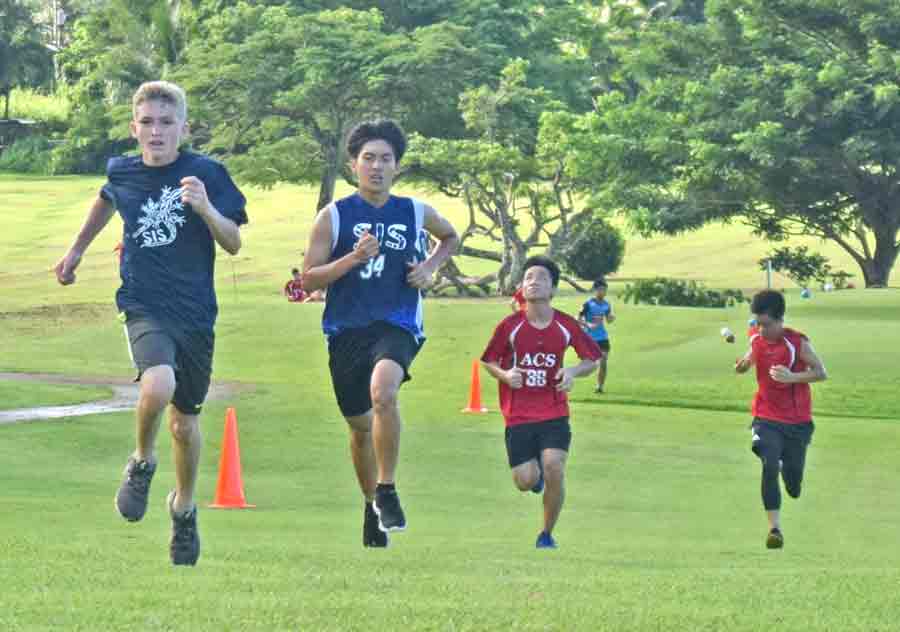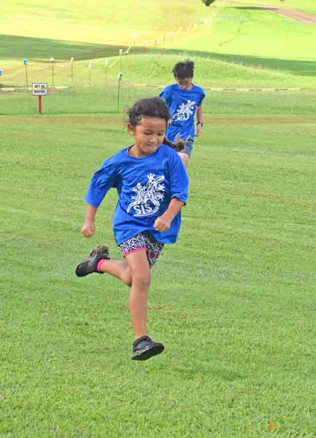 Young runners in the boys and girls U7, U9, and U11 age groups head toward the one-mile course during last Saturday’s 2017 Northern Marianas Athletics All Schools Cross Country Finals held at the Saipan Country Club.