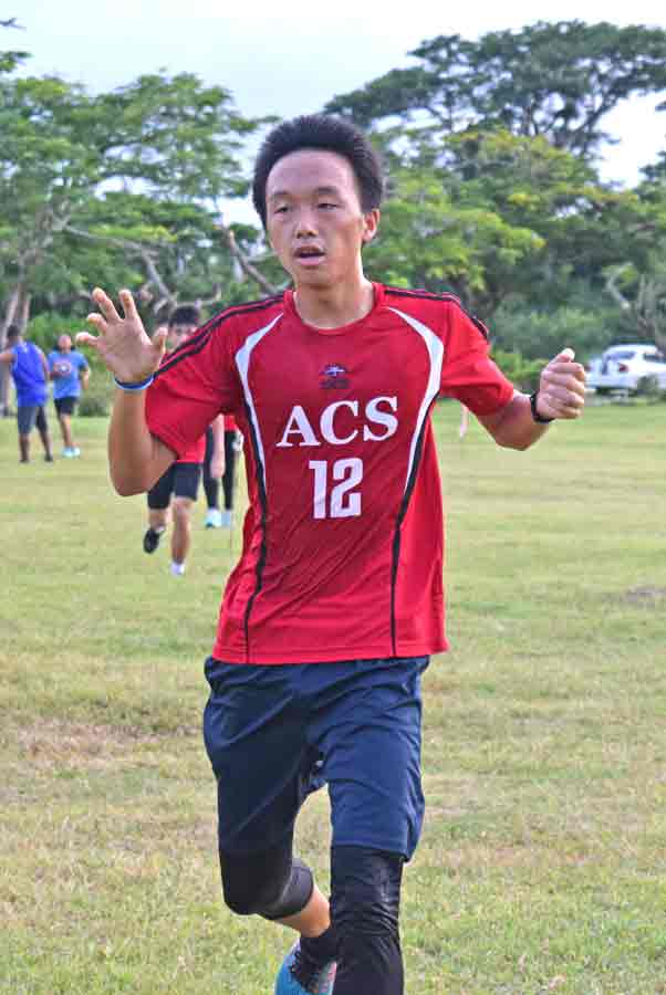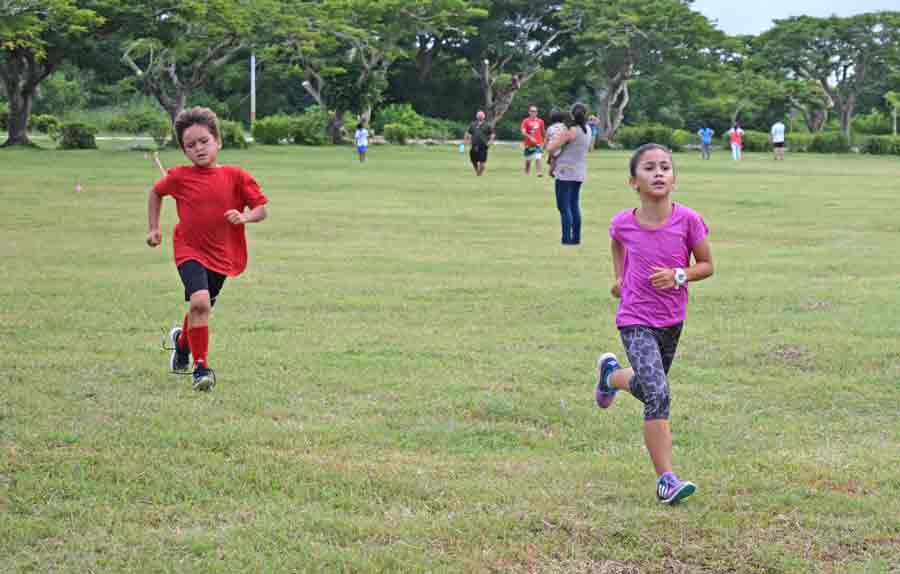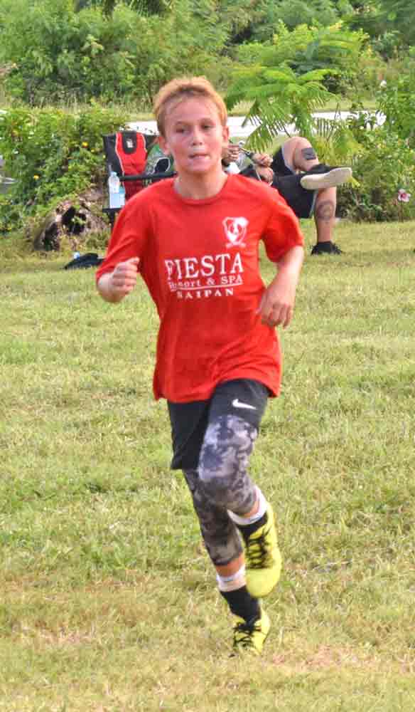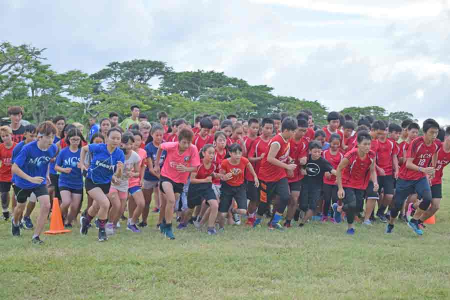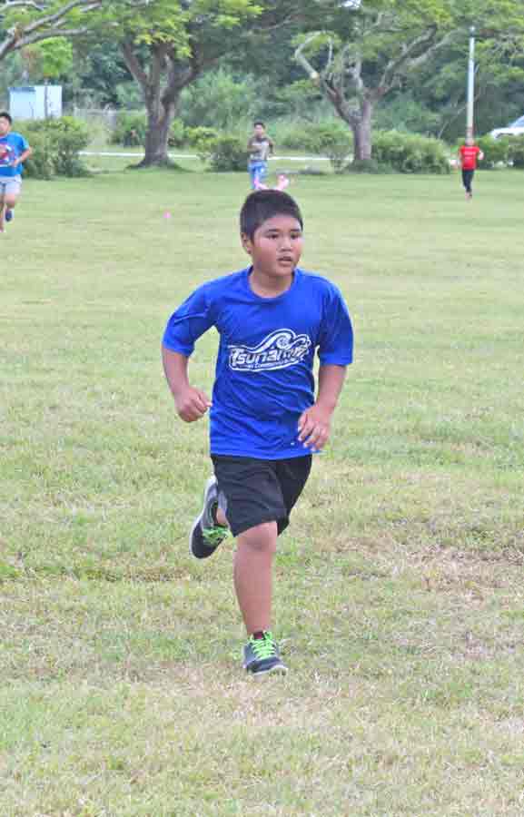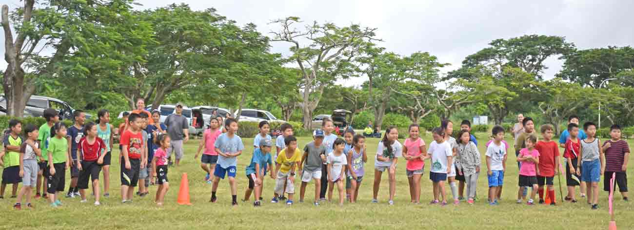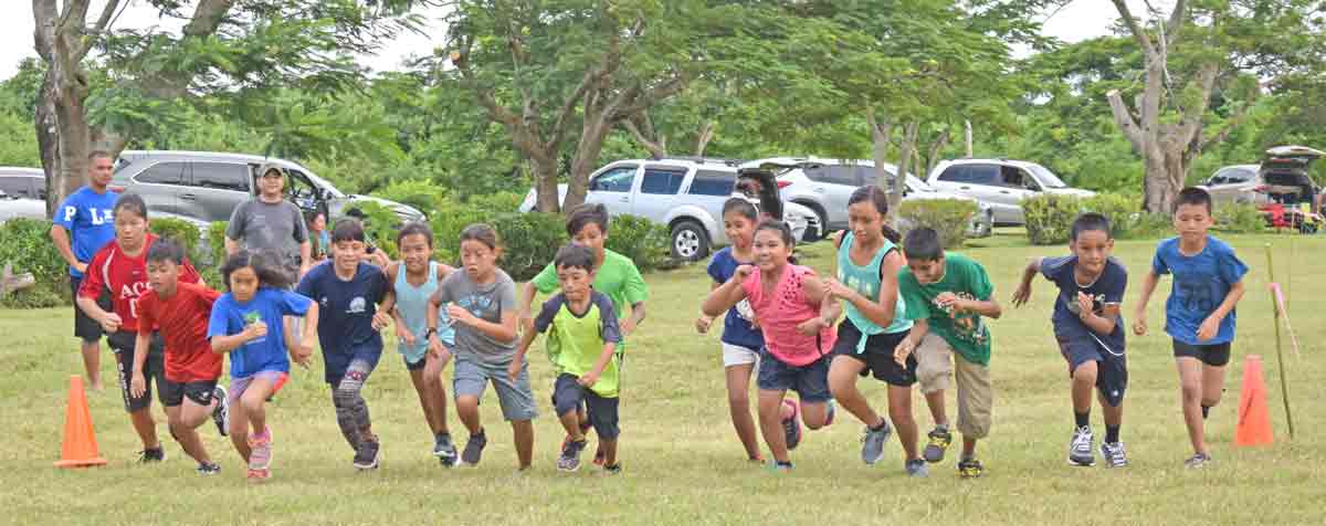 Participants in the U7 and U9 age group prepare at the starting line of last Saturday’s 2017 Northern Marianas Athletics All Schools Cross Country Series 2 at the Airport Field in Dandan.