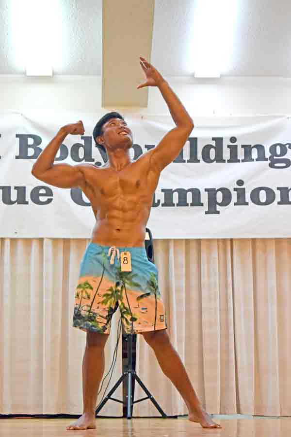 Sean Japor flexes his muscles for the judges in last Saturday’s NMI Bodybuilding & Physique Championships at the Pedro P. Tenorio Multipurpose Center in Susupe.