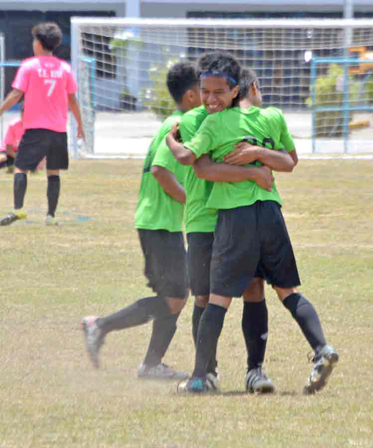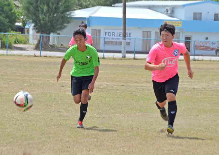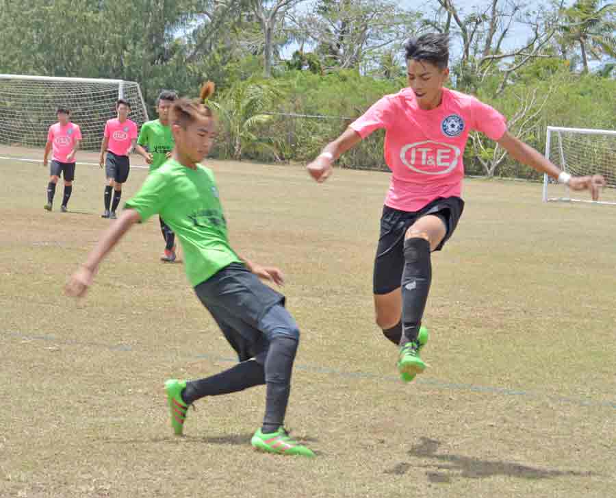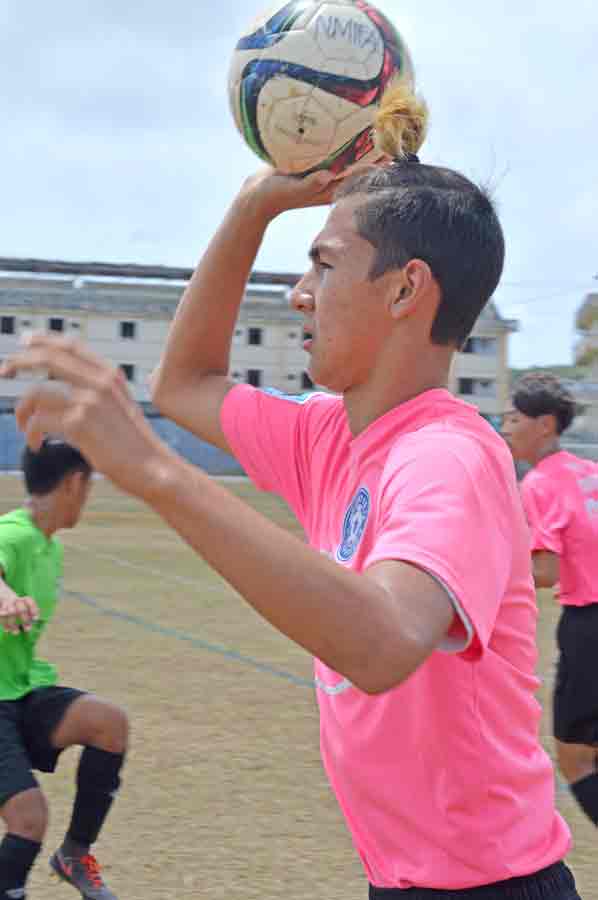 MP United Football Club’s Sunjoon Tenorio makes the throw-in during the second half of their boys U17 division game against TanHoldings FC in the 2017 NMIFA Youth Spring League last Saturday at the Hopwood Middle School Field.