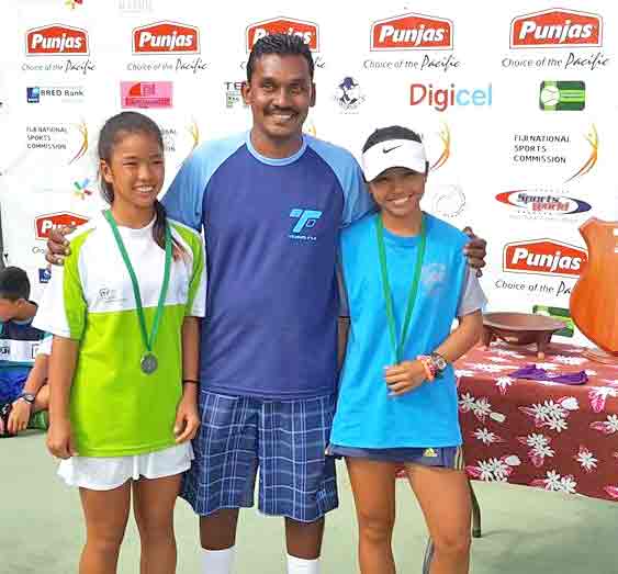 The CNMI’s Coume Kaga, left, and her sister Conatsu pose with their runner-up medals in the girls U14 doubles events of the 2017 Pacific Oceania Junior Championships held last week in Fiji.