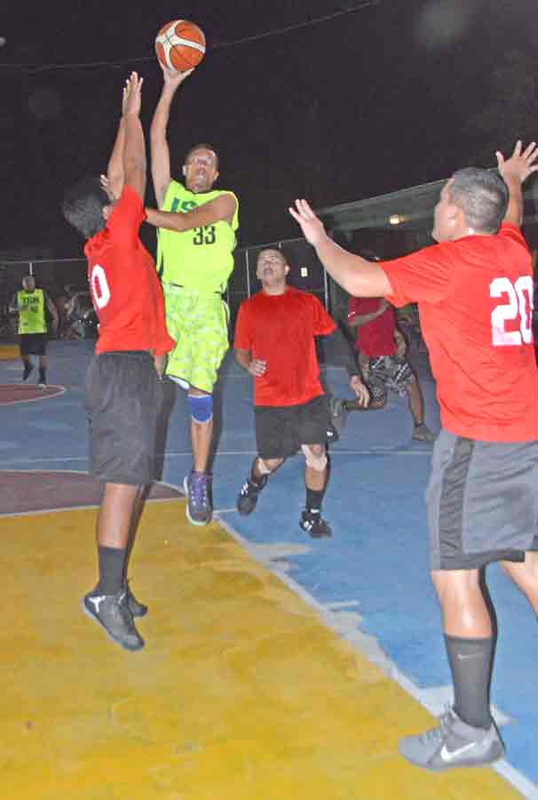 Stephen’s Pawnshop’s Mii Tekopua drives past Kagman defenders during their game in the in the 2017 San Antonio Summer Basketball League at the San Antonio court.