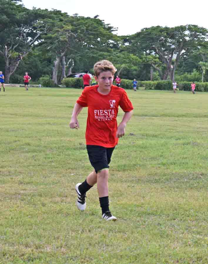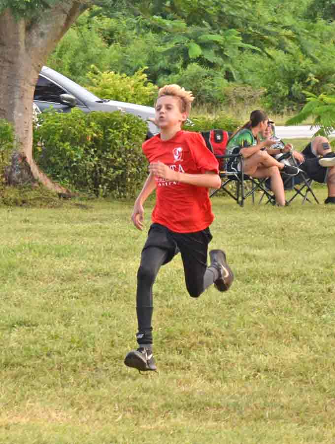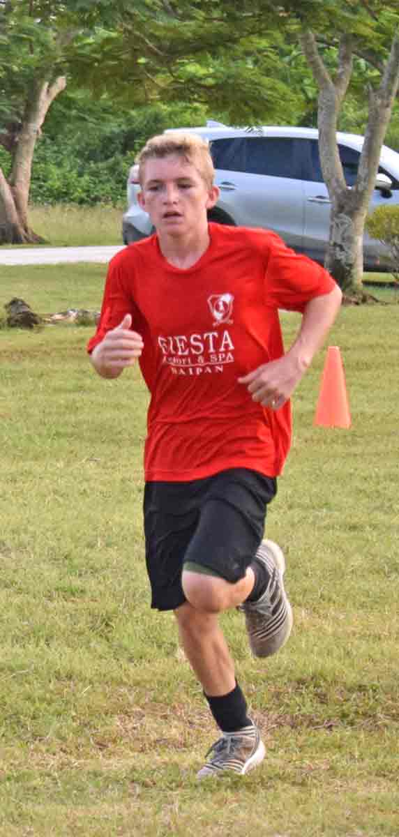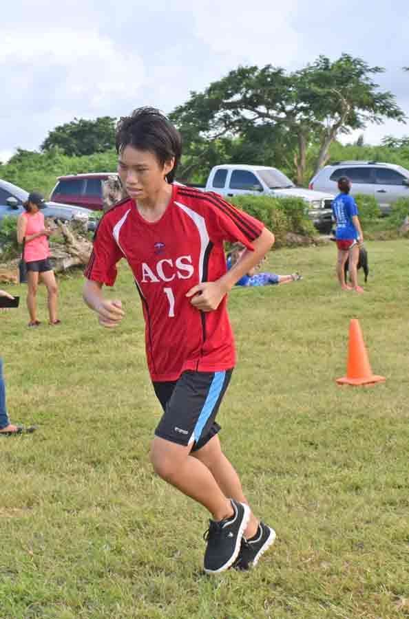 Mt. Carmel School’s Kern Han Cao slows down as he nears the finish line of the second leg of the Northern Marianas Athletics’ 2017 Cross Country Series 2 held last Oct. 7 at the Airport Field. He was the first finisher in the boys U11 division.
