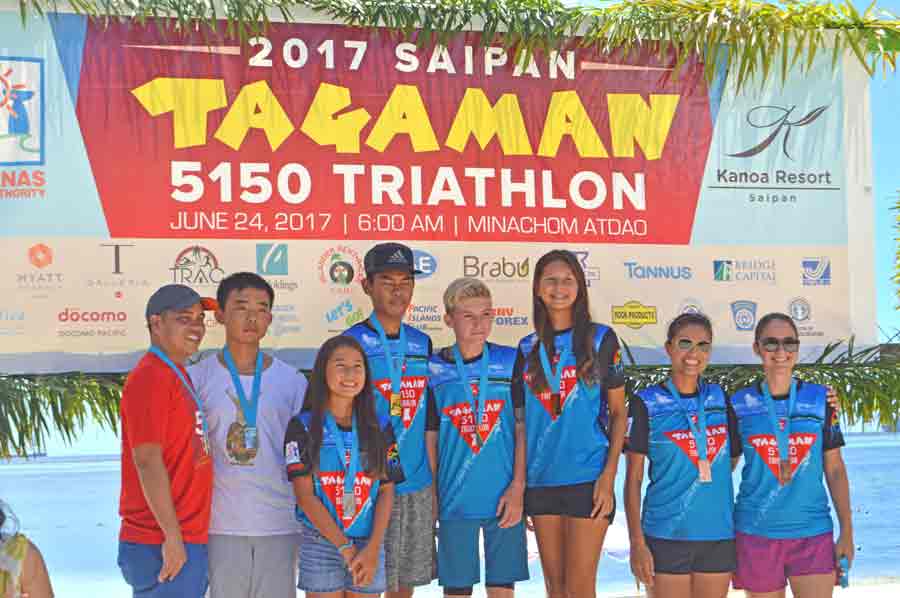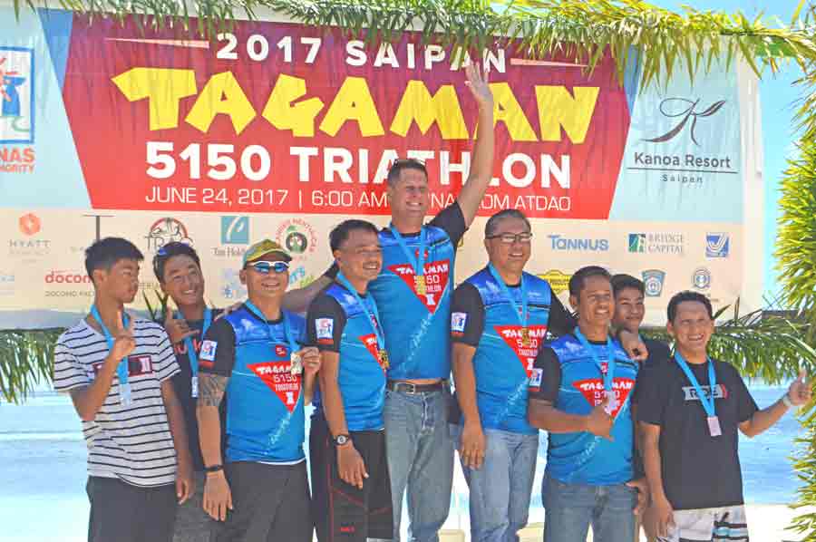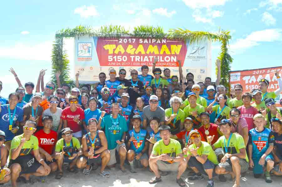 Participants in the 2017 Tagaman Triathlon held late last month pose for a group photo at the beachside of Kanoa Resort.