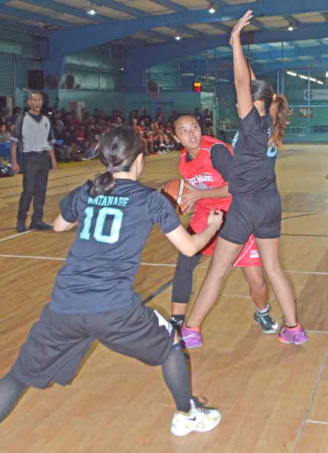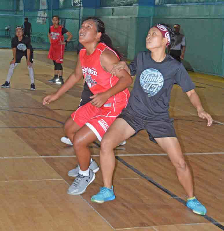 GSM Lady Ol’Aces’ Cassandra Camacho, left, and CTSI’s Angie Ito jockey for position as they get ready for the rebound play during their the title game in the women’s division of the 2017 TanHoldings Christmas Basketball Tournament last Saturday at the Gillette Multipurpose Gymnasium.