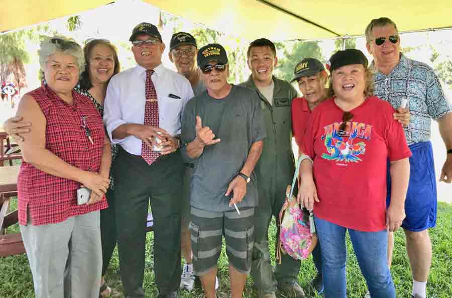 Some of the CNMI’s veterans and their family along with the director of Veterans Affairs Office Oscar A. Torres pose for a photo at a special picnic on Saturday hosted by Imperial Pacific International through its Corporate Social Responsibility arm and the CNMI Veteran’s Affairs Office. (Contributed Photo)