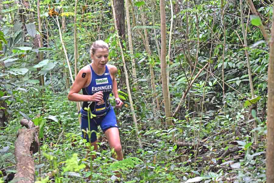 Nicole Harkness approaches the entrance of the trail run leg of the race.
