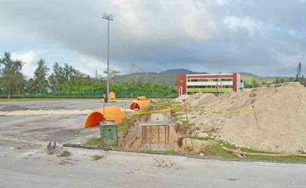 The resurfacing work at the Oleai Sports Complex’s track and field facility includes the installation of a better drainage system....