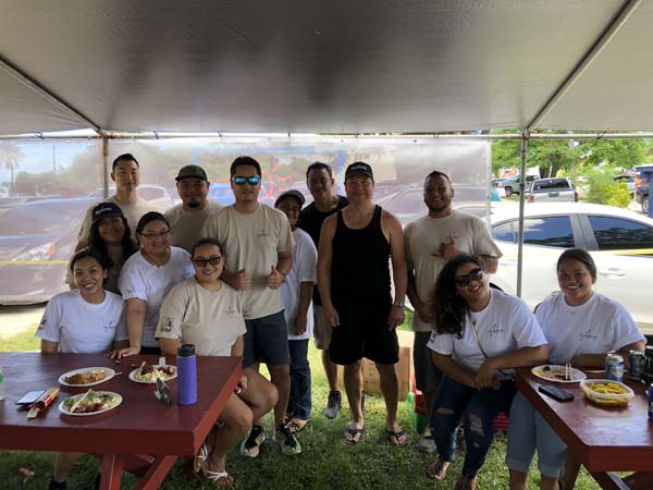 The Department of Public Safety enjoyed their lunch Saturday while the staff of the Legislature poses for a picture during the pre-Labor Day picnic last Saturday at the Garapan Fishing Base.