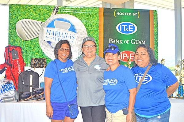 From left, IT&E CNMI general manager Rose Soledad, Bank of Guam vice president/CNMI regional manager Marcie Tomokane, IT&E engineering and plant technical services manager Velma Palacios, and IT&E customer service manager Janice Tenorio pose for a photo while waiting for the awards ceremony to start.