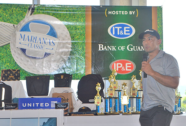IP&E managing director Brian Bamba briefs the crowd on why his company, IT&E, and Bank of Guam came up with an idea of having a golf tournament that benefits the community.