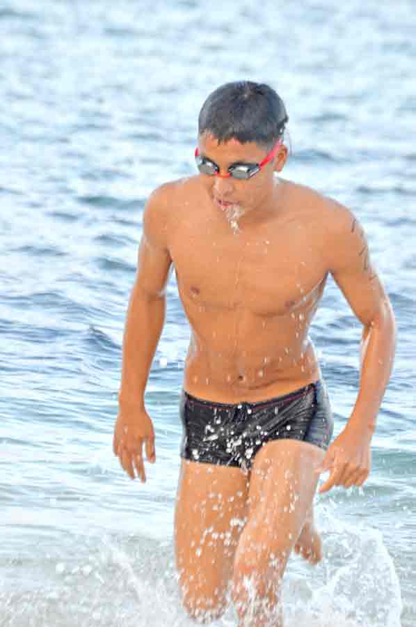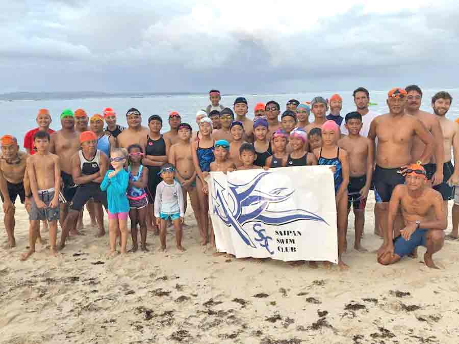 Participants in the 2018 Meek & Mighty Ocean Swim held early this month pose for a group photo before they head out to the waters off Pacific Islands Club. (Contributed Photo)