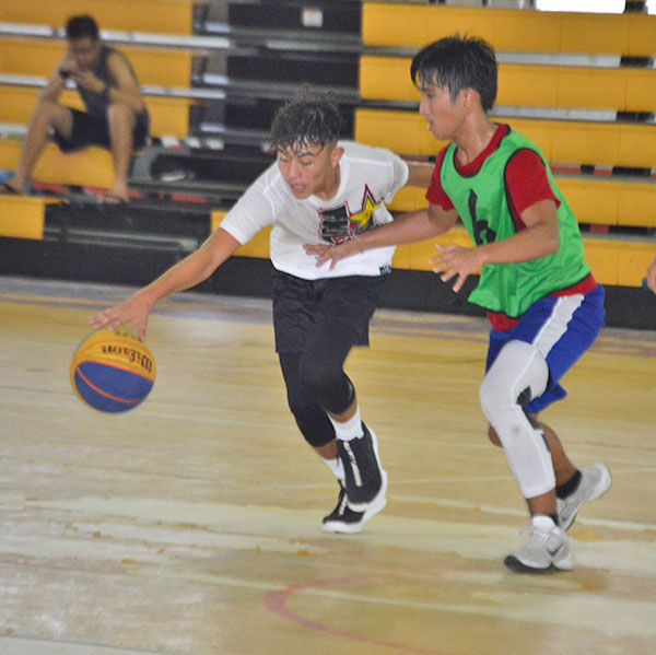Hafa Adai’s Eric Deleon Guerrero goes for a reverse shot against Easy Money’s Jasmine Phan during their playoff game in the qualifying tournament for the 2018 Mixed U-18 IBF Youth Leaders Basketball Cup last Saturday at the Gilbert C. Ada Gymnasium.