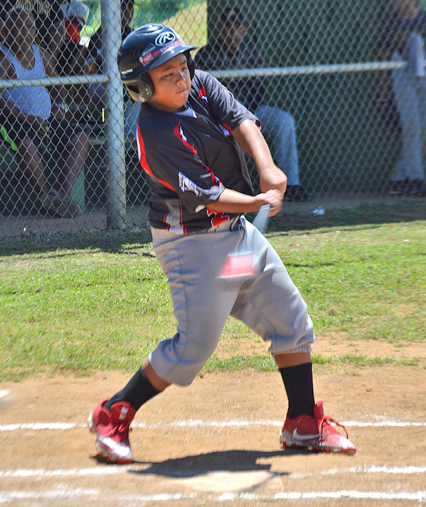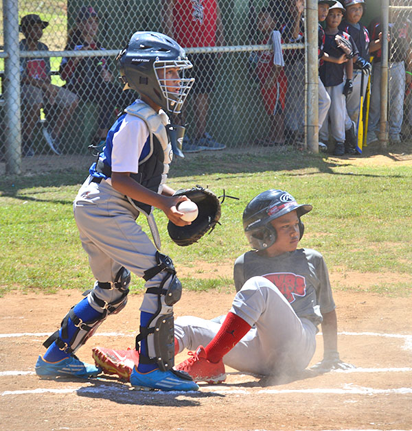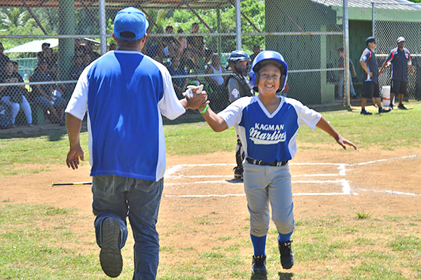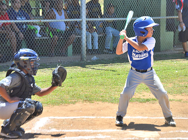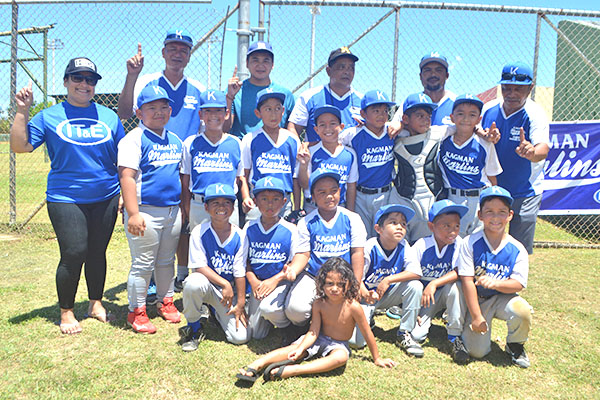 Kagman Marlins players and coaches are joined by IT&E CNMI marketing manager Natashia Tomokane, standing left, for a group photo after the Minor division championship game in the 2018 Saipan Little League Baseball last Saturday at the Francisco “Tan Ko” Palacios Ballfield. The IT&E and Robert Torres-sponsored Marlins defeated the NSA Braves in the finals, 6-3.
