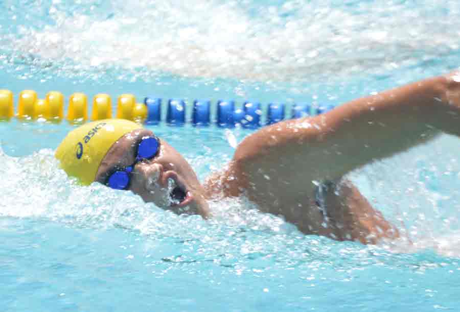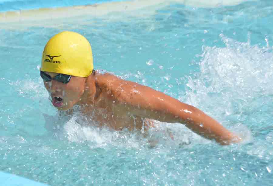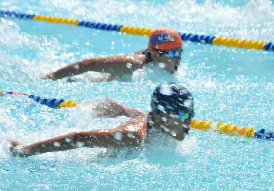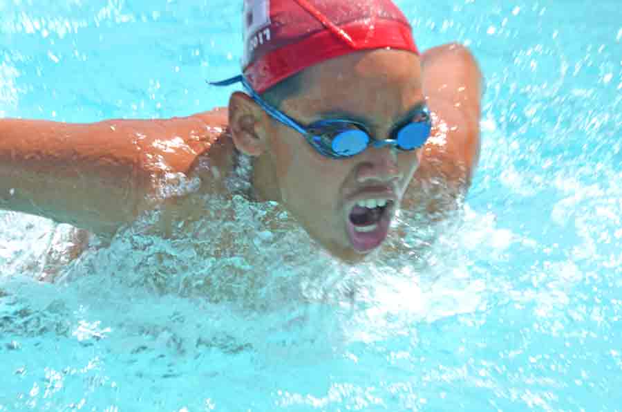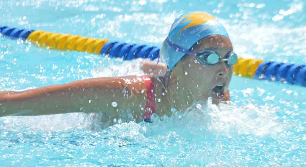 Saipan Swim Club’s Jinju Thompson races in the 100m butterfly event in the 2018 SSC International Meet held last month at the Kan Pacific Swimming Pool.