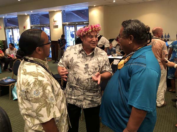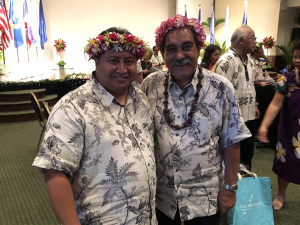 Chuuk Gov. Johnson Elimo, right, shares a laugh with Pohnpei Gov. Marcel Peterson. (Photos by Erwin Encinares)