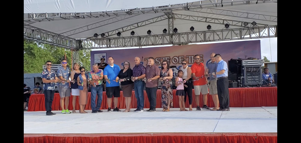 Local dignitaries and their families join Marianas Visitors Authority officials in a ribbon-cutting ceremony to signify the start of the 24th Annual Taste of the Marianas International Food Festival and Beer Garden that will be held every Saturday in June at the Garapan Fishing Base. (FERDIE DE LA TORRE)