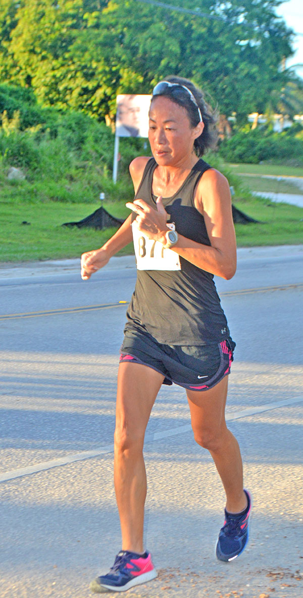 Tania Tan, left, and Therize Millare keep each others company as they run back to the start/finish line.