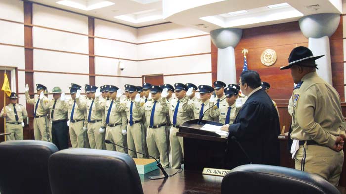 Shortly before the graduation ceremony, the cadets took their oath as new officers before Superior Court Associate Judge Joseph N. Camacho.