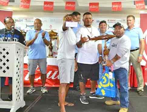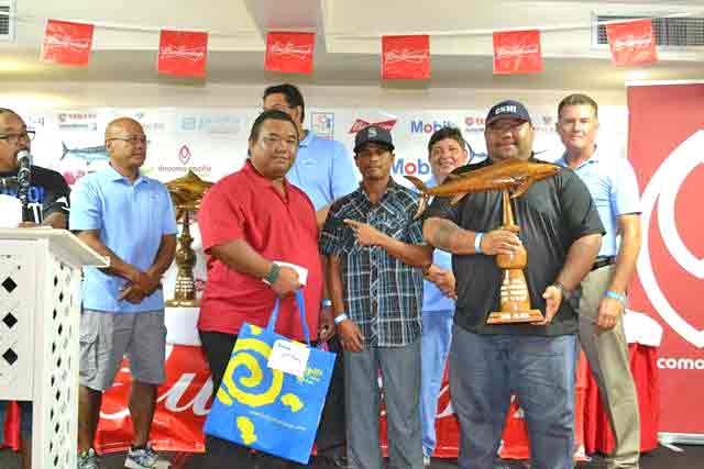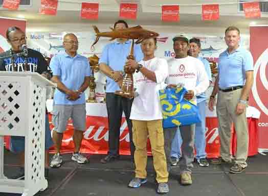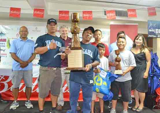 Debbie 1 captain, crewmembers, and supporters are joined in the photo by organizers and sponsors of the 33rd Saipan International Fishing Tournament during the awards ceremony held at The Magellan’s of the Pacific Islands Club.