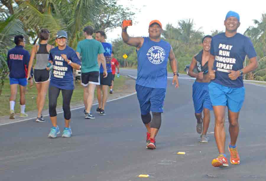 Finishers and organizers of the 36th Annual Christmas Island Relay pose for a photo at the conclusion of last month’s event at the Last Command Post.
