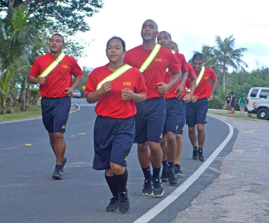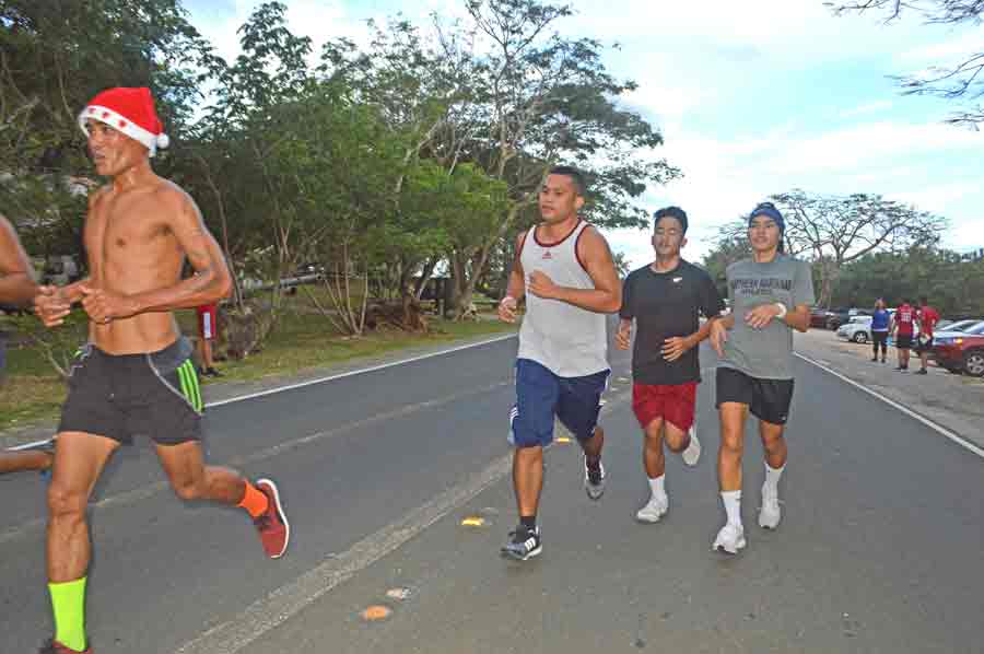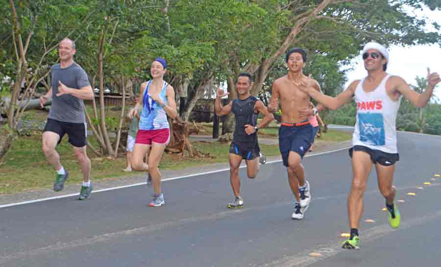 TRAC 1 runners are all smiles as they are about to finish the 13.7-mile race from Pacific Islands Club Saipan in San Antonio to the Last Command Post in Marpi.