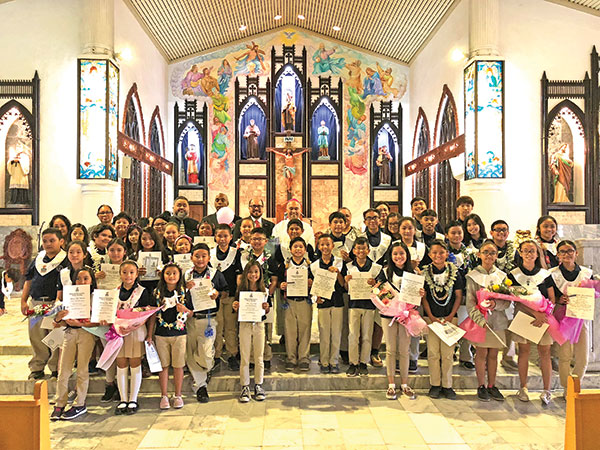 Bishop Ryan Jimenez of the Diocese of Chalan Kanoa was on hand to help celebrate the special occasion. He also opened the induction ceremony with a prayer and a blessing of the candles representing the values of the honor societies.