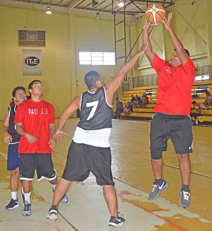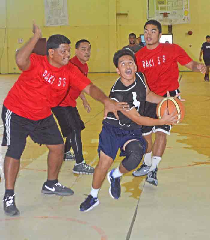 Ballers Bros’ Khristian Itaas is fouled by a Young Ballers’ defender during their boys U16 division game in the 3x3 Hoopfest Marianas 2017 late last month at the Gilbert C. Ada Gymnasium.