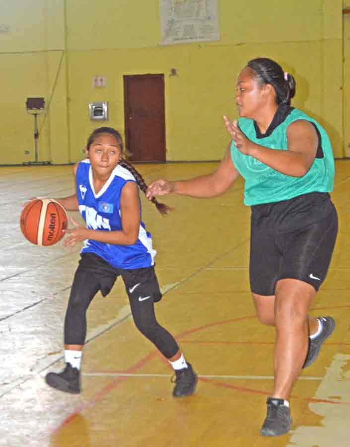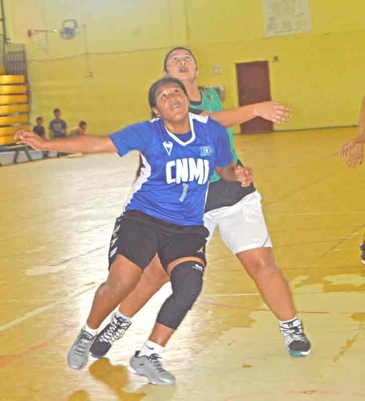 Fab 4’s Anna Lei Santos fakes off the defense of HiDaze players during their title game in the women’s division of the Saipan leg of the 3x3 Hoopfest Marianas 2017 last Saturday at the Gilbert C. Ada Gymnasium.