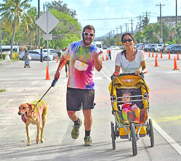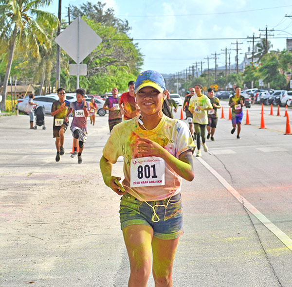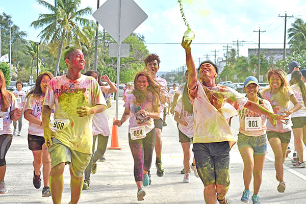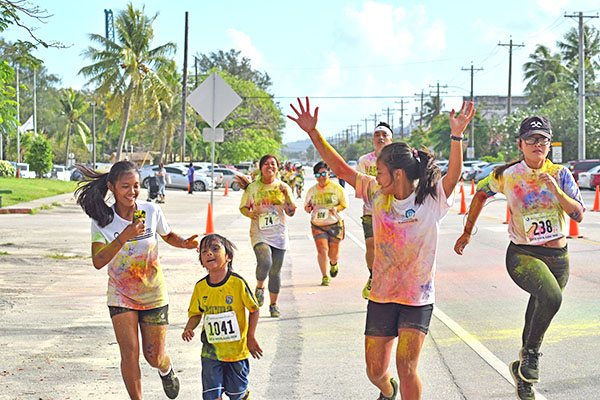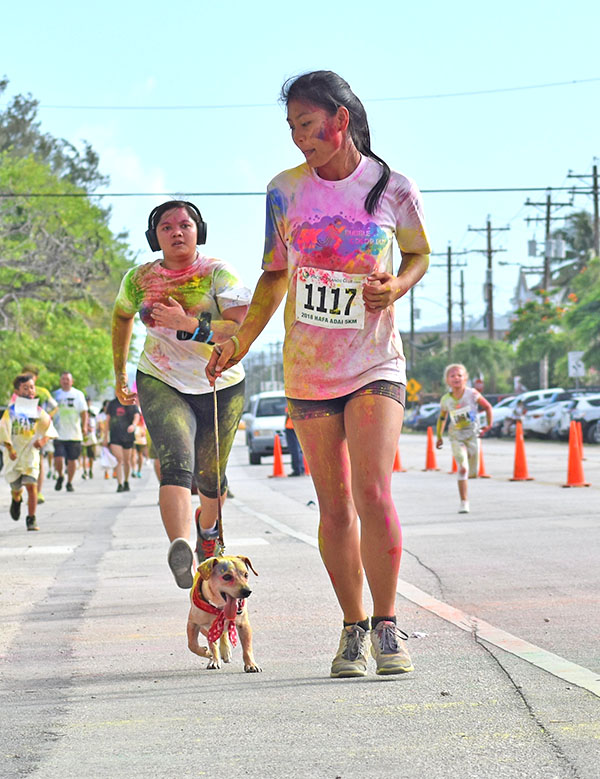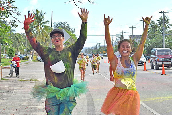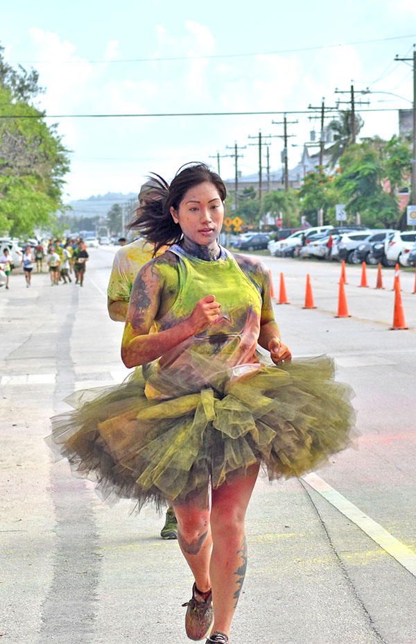 Two participants wearing tutus are on their way to completing the 5th Annual Pacific Islands Club Hafa Adai 5K Color Run held last Saturday.