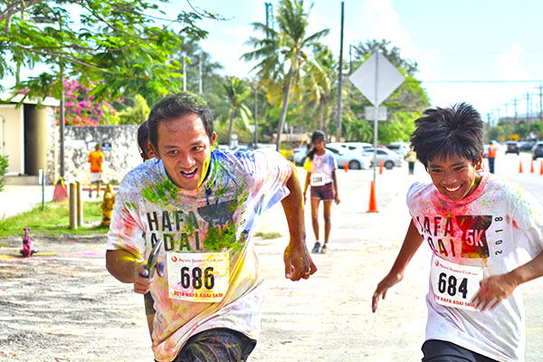 Marianas High School’s Filipino Club members celebrate as they near the finish line.