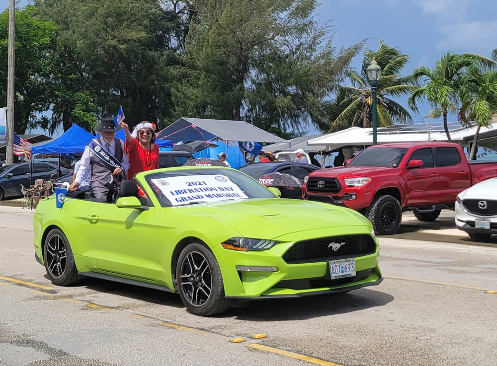 The 2021 Liberation Day Grand Marshal, Stanley McGinnis, seated, left. (JAYVEE VALLEJERA)