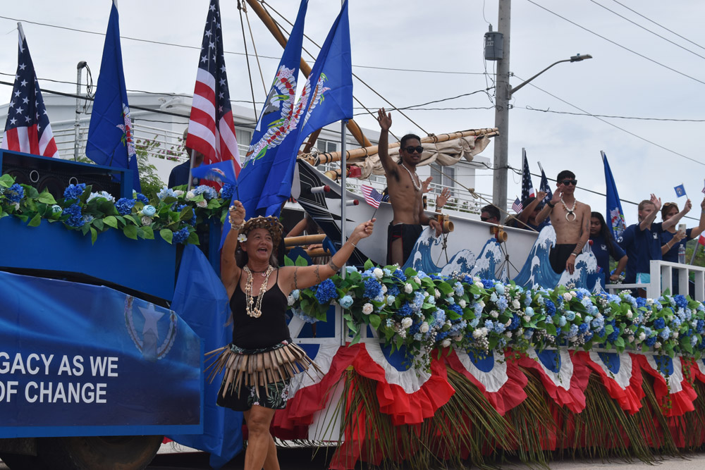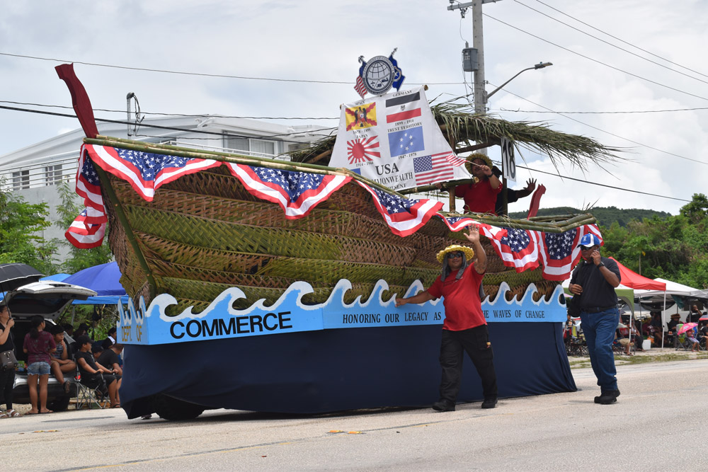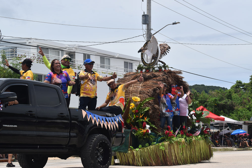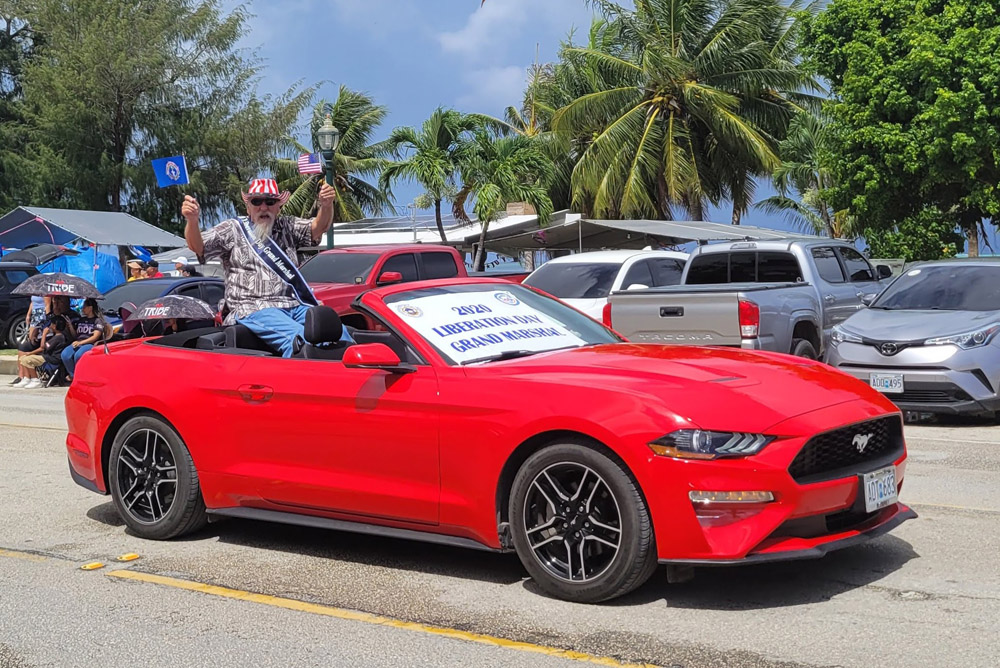 The 2022 Liberation Day Grand Marshall, Mike Sablan, seated left. (JAYVEE VALLEJERA)