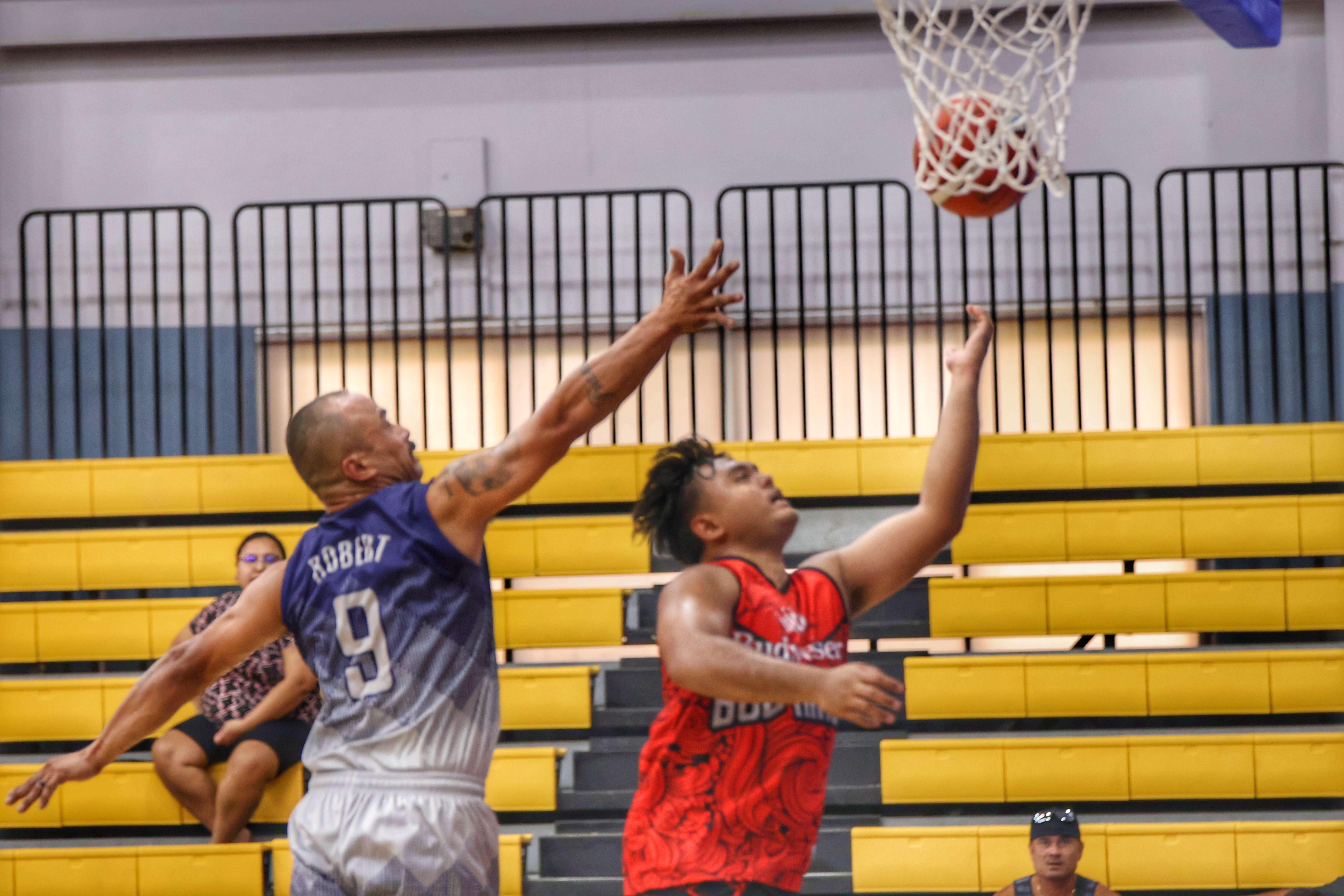 Marpac’s Greg Sablan leaps for a left-handed layup as he’s contested by CPA’s Frank Robert during their game in the 2nd Annual R&J Wine and Liquor Inter-Gov’t/Business League 2024 last Saturday at the Gilbert C. Ada Gymnasium.