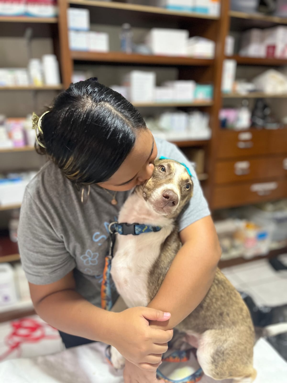 Saipan Humane Society’s Shareen Mongkeya kisses a furry patient post-treatment at SHS’ last spay and neuter clinic last month.