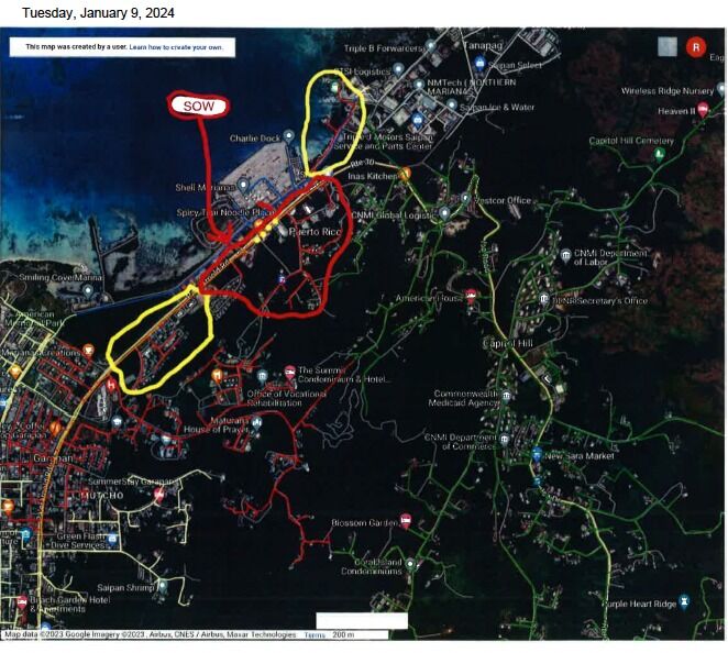Map of the Commonwealth Utilities Corp.’s scheduled power service interruption on Jan. 9, 2024.